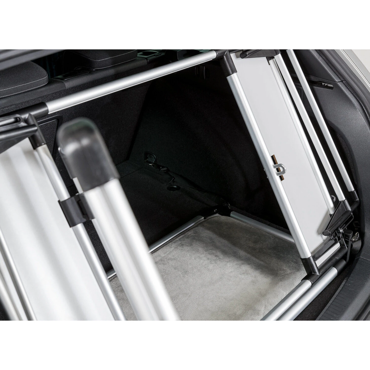 Met het achterhek kan de gehele kofferbak als ligoppervlak gebruikt worden door uw hond. De bodemplaat is voorzien van klittebandpootjes, waardoor het gehele hek stevig op zijn plek blijft staan. De slipvaste ligmat is wasbaar in een wasmachine op maximaal 30 graden Celsius. Het Trixie Universeel Achterhek is gemaakt van aluminium, hardboard en kunststof materialen en wordt geleverd met vier bevestigingshaken. Ook heeft het deurtje een sleuf voor een hangslot, het slot zelfs is niet inbegrepen. De breedte is aan te passen van 94 tot 114 centimeter, de hoogte is 69 centimeter en de diepte is 53 centimeter. Kijk uiteraard goed naar de afmetingen van uw kofferbak en controleer of het geheel past. Het hek is geschikt voor de meeste hatchbacks, stationwagons en SUV’s.